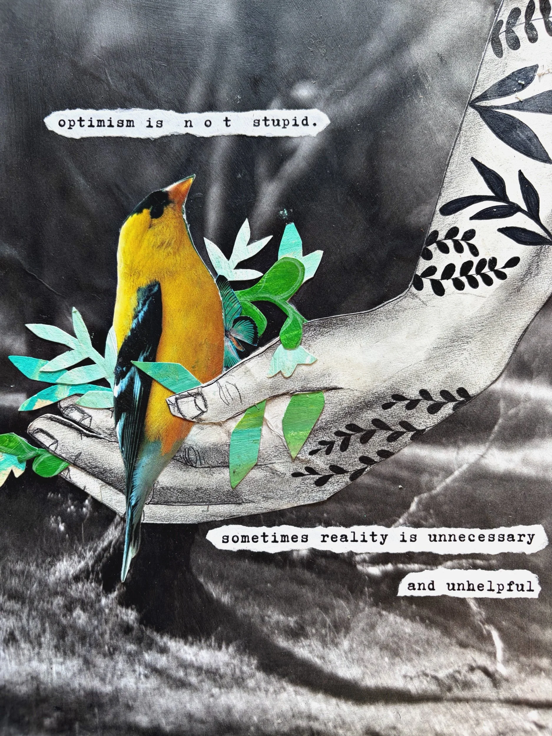 original graphite drawing and mixed media collage on board